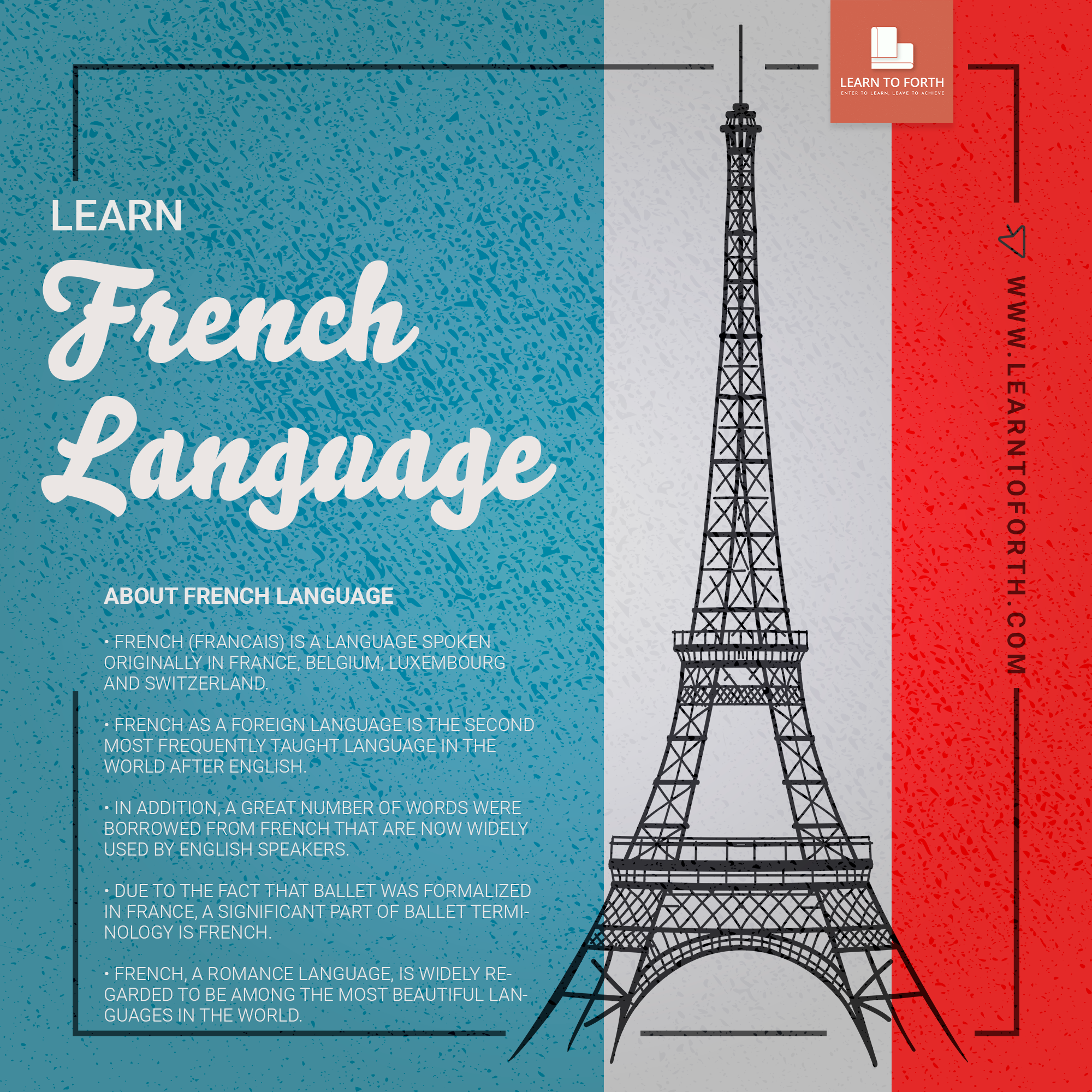 - French as a foreign language is the second most frequently taught language in the world after English.